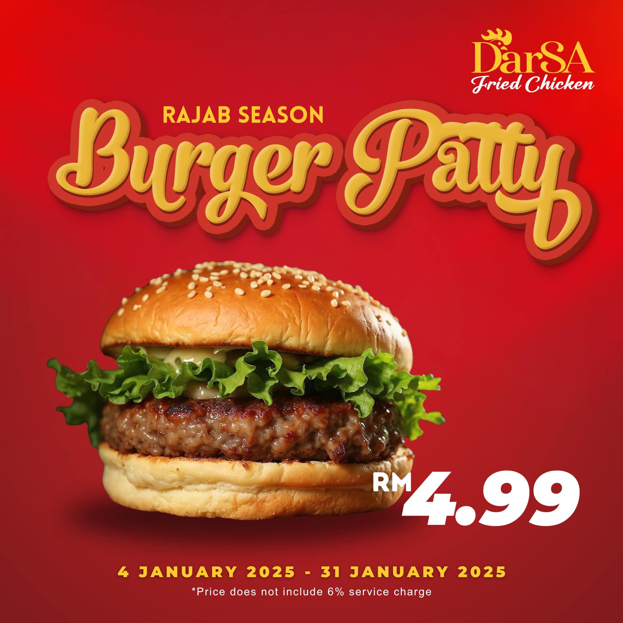 DarSA Fried Chicken kini memperkenalkan Burgerluck Ketawwa dengan harga RM4.99! Bermula 4 Januari 2024 hingga 31 Januari 2025, pelanggan boleh menikmati Burgerluck Ketawwa yang lazat ini dengan harga yang sangat berbaloi di semua cawangan DarSA Fried Chicken yang terletak di Bukit Beruntung, Bandar Seri Putra, dan Puncak Alam.