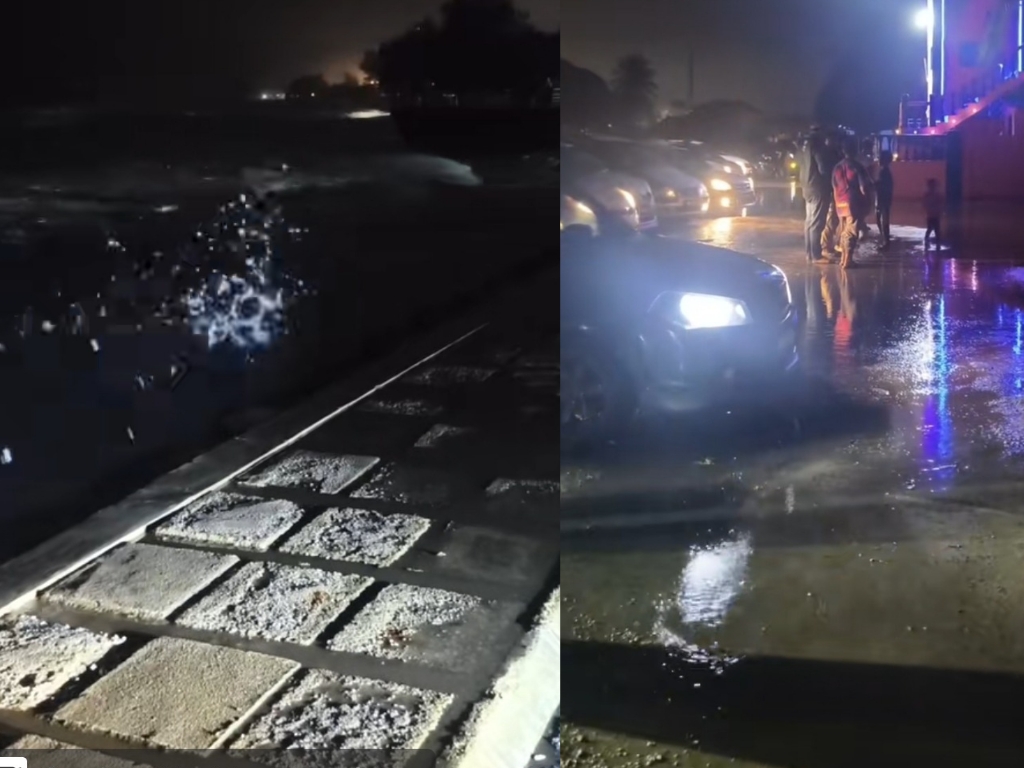 Kuantan, 12 Januari – Pantai Batu Hitam di Kuantan kini menjadi tumpuan orang ramai untuk melihat fenomena air pasang tinggi, walaupun pada waktu malam.
