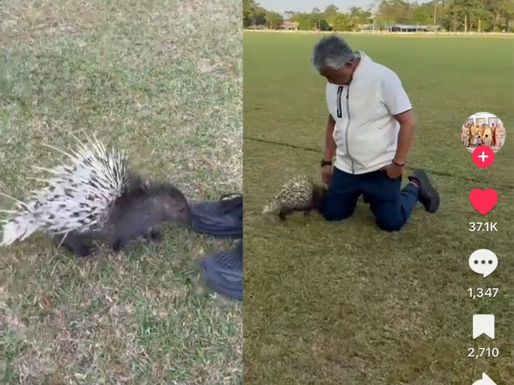 Insiden mengejut namun mencuit hati itu menyaksikan gelagat landak berkenaan yang kelihatan tenang dan langsung tidak menunjukkan rasa takut, seolah-olah mahu “menghadap” Tuanku. Kejadian tersebut pantas dirakam dan dikongsi ke media sosial, menarik ribuan reaksi daripada rakyat jelata yang terhibur dengan situasi unik itu.